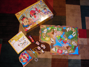 This game is great for fine motor skills. There is a hammock set up on the board game where you put all the treasures. Taking turns you will get the opportunity to remove treasures using tools. They offer different tools for you to use while removing a treasure. On some turns you get to pick the tool on others they tell you which tool you have to use.